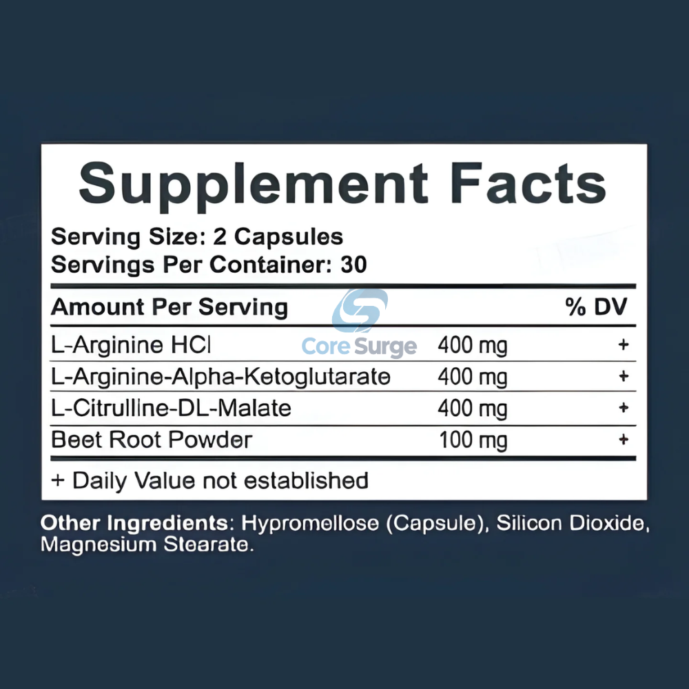 Each capsule combines the powerful amino acids L-Arginine and L-Citrulline, along with beetroot extract, to boost nitric oxide production — the key molecule your body uses to promote healthy blood flow, energy, and endurance.